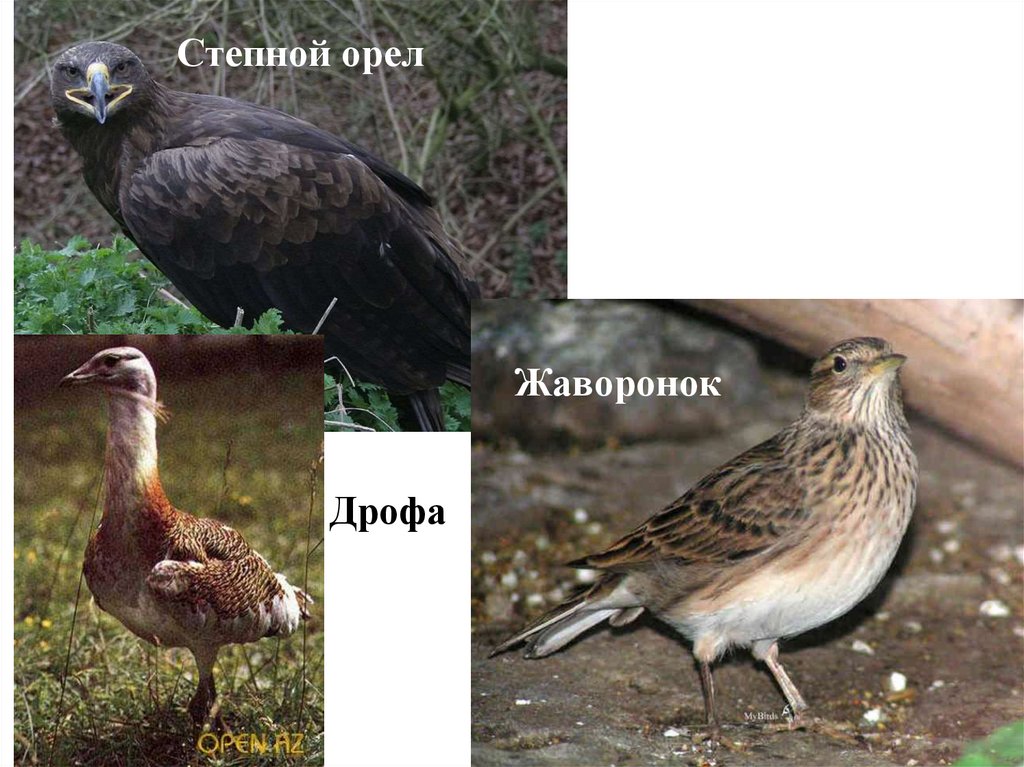 Животный мир: степные виды (суслик, сурок, дрофа) + лесные