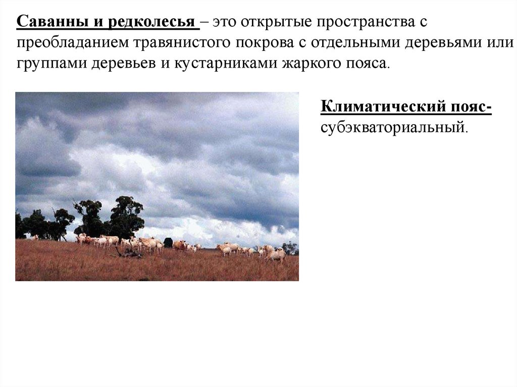 Саванны и редколесья – это открытые пространства спреобладанием травянистого покрова с отдельными деревьями или