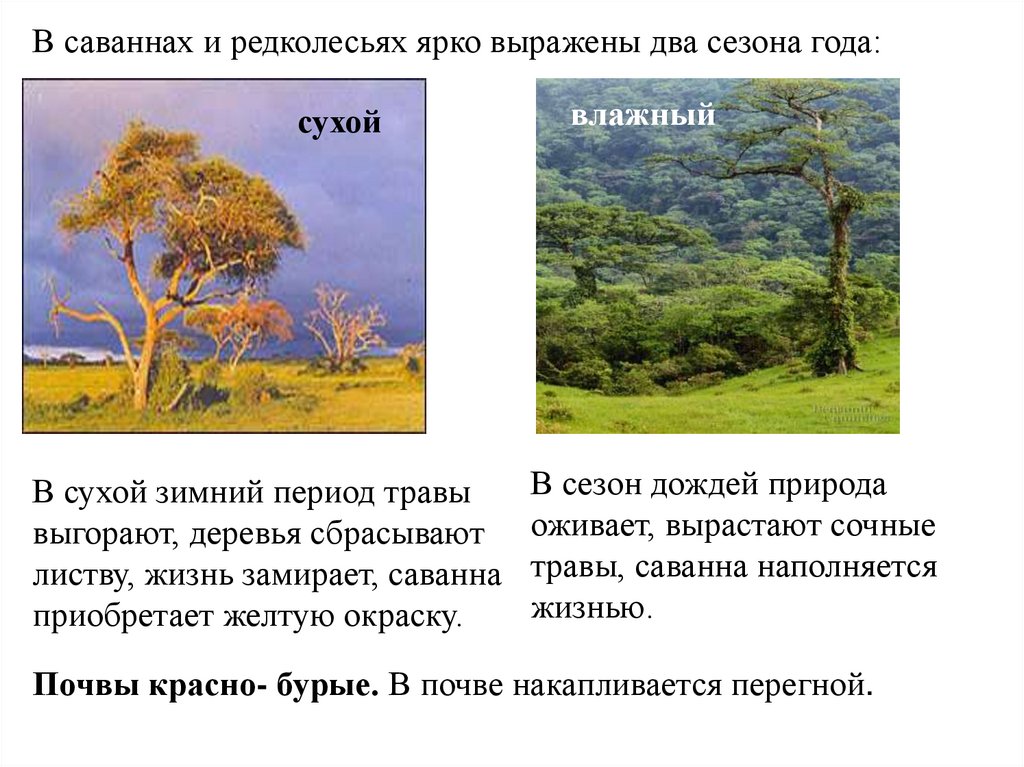 В саваннах и редколесьях ярко выражены два сезона года:сухой