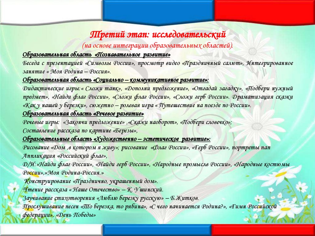 Третий этап: исследовательский(на основе интеграции образовательных областей).