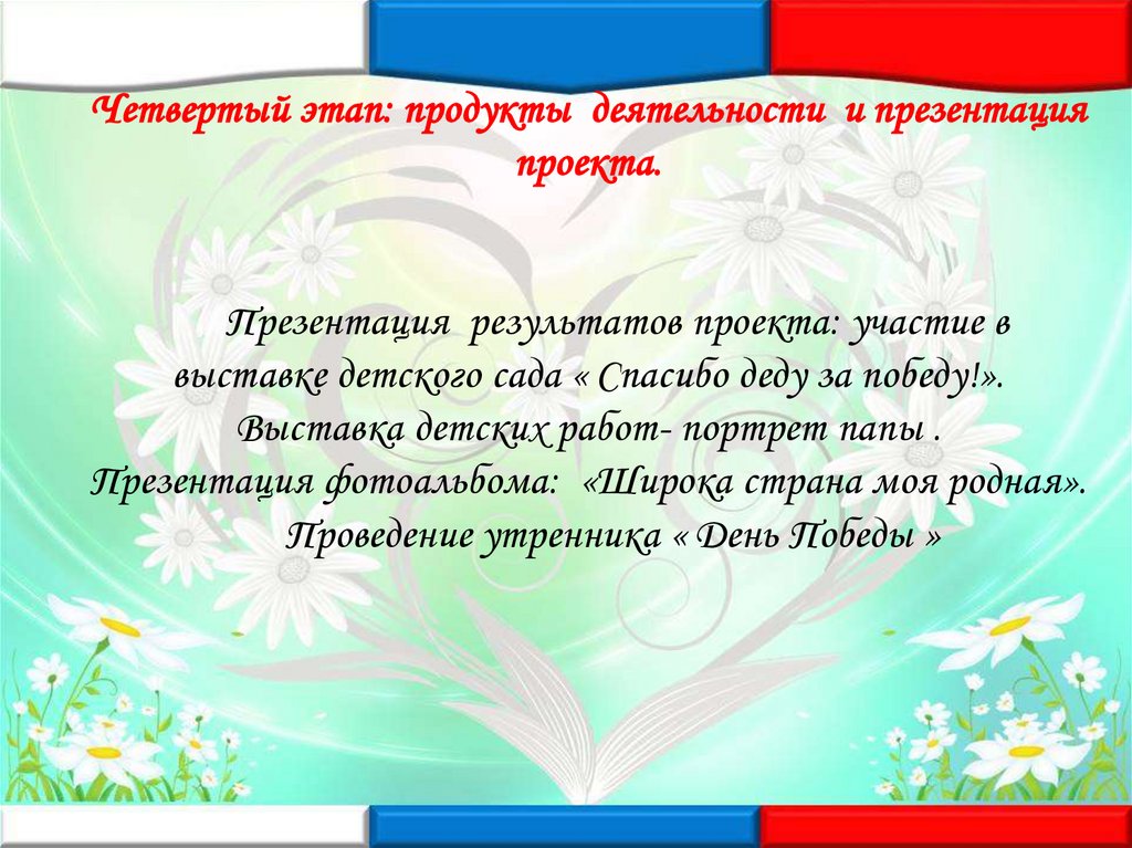 Четвертый этап: продукты деятельности и презентацияпроекта.