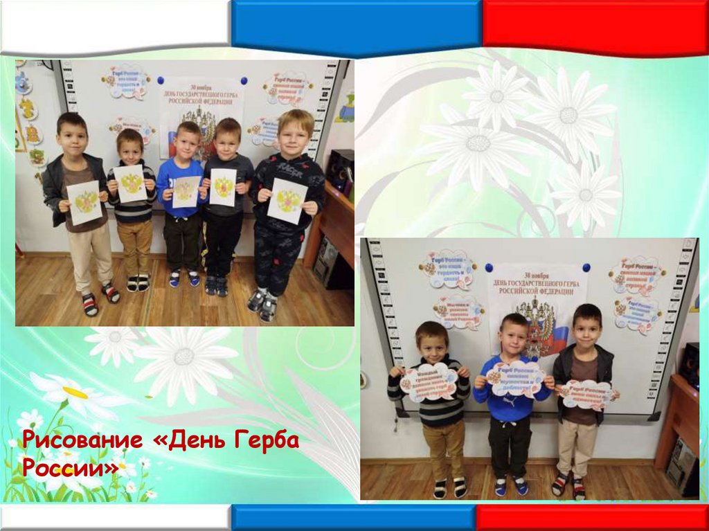 Рисование «Дом ,в котором я живу»; рисование «Флаг России», «Герб России», портреты пап