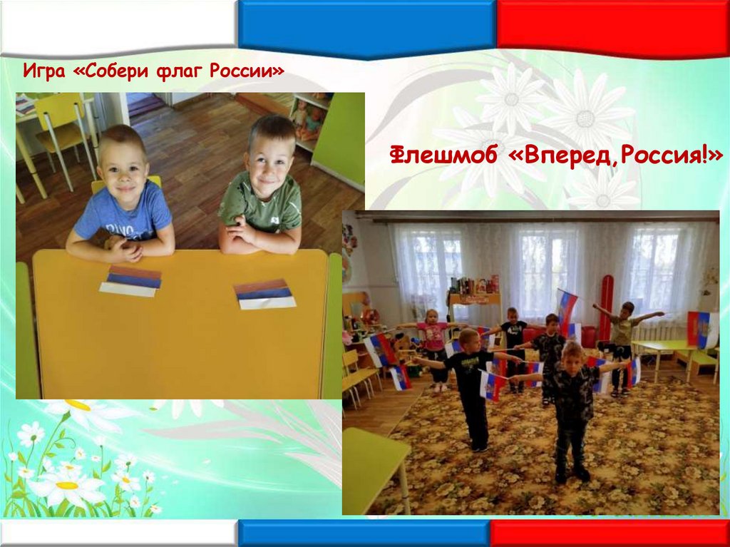 Игра «Собери флаг России»Флешмоб «Вперед,Россия!»