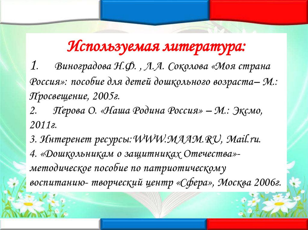 2. Перова О. «Наша Родина Россия» – М.: Эксмо,