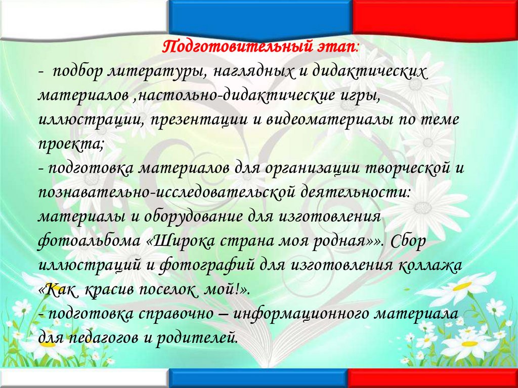 Подготовительный этап:- подбор литературы, наглядных и дидактических