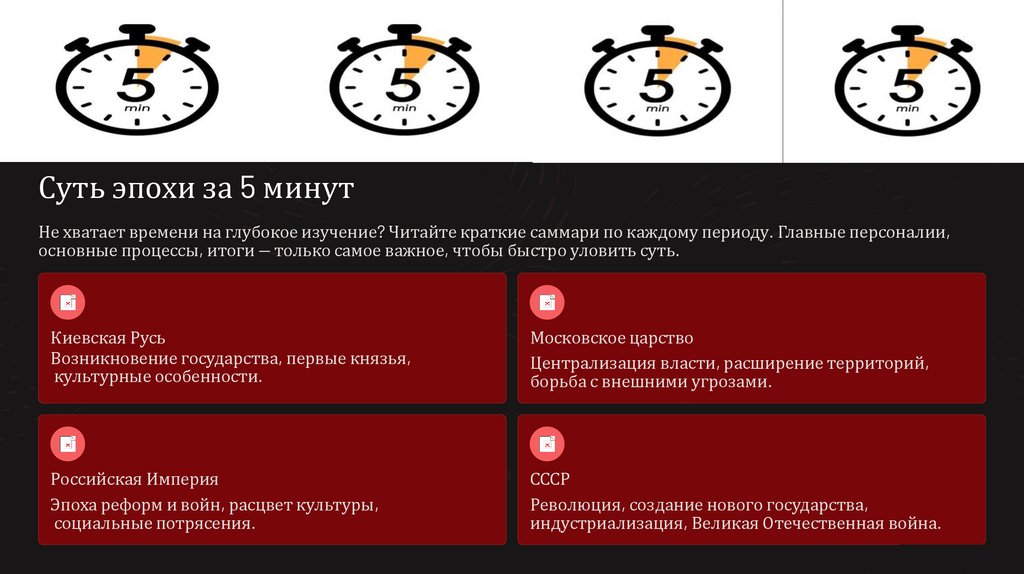 Суть эпохи за 5 минутНе хватает времени на глубокое изучение? Читайте краткие саммари по каждому периоду. Главные персоналии,