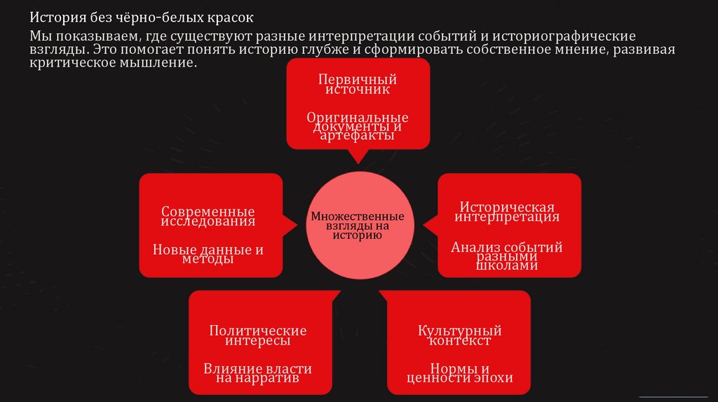 История без чёрно-белых красокМы показываем, где существуют разные интерпретации событий и историографические