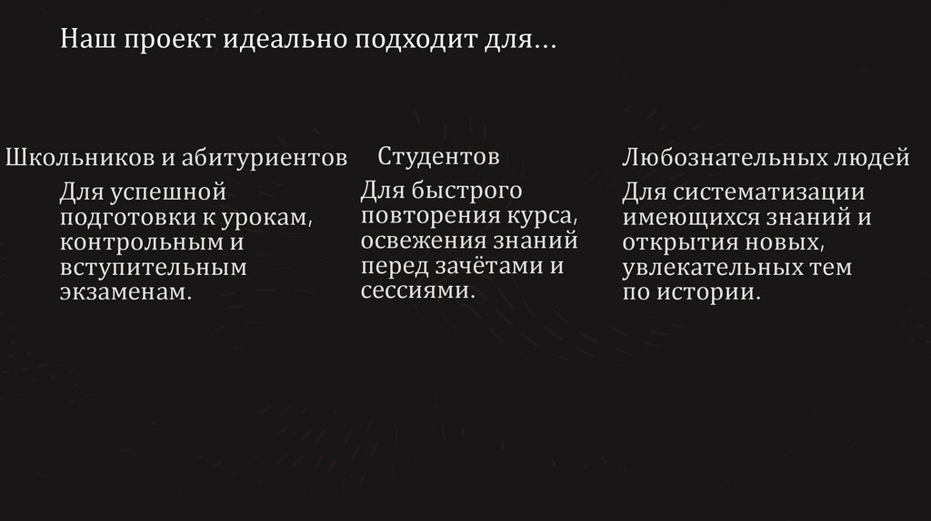 Наш проект идеально подходит для...Школьников и абитуриентов Студентов