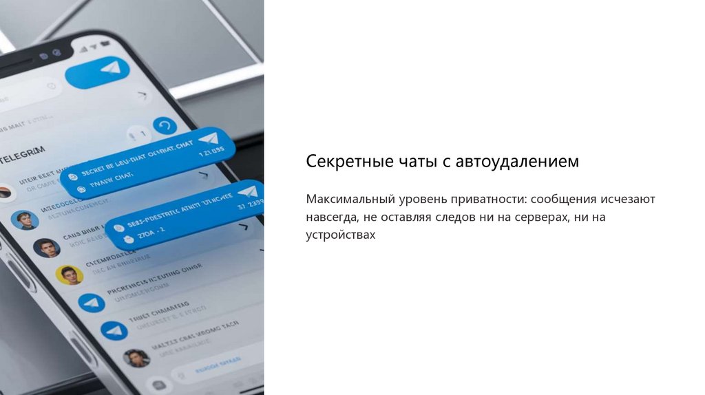 Секретные чаты с автоудалениемМаксимальный уровень приватности: сообщения исчезают
