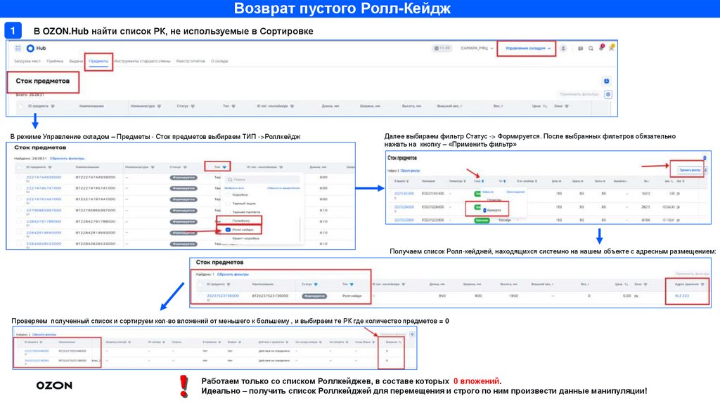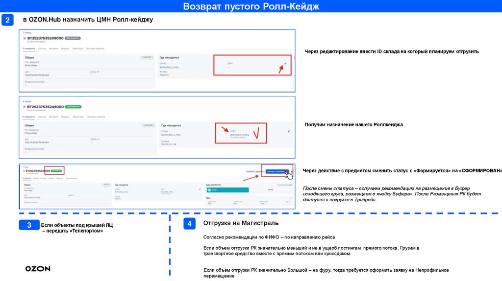 в OZON.Hub назначить ЦМН Ролл-кейджу