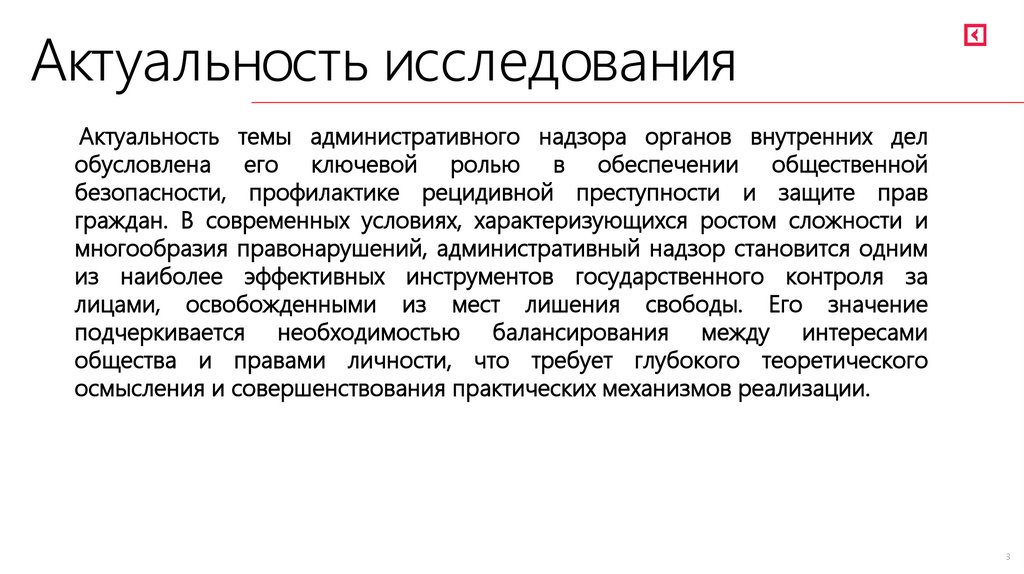 Актуальность исследованияАктуальность темы административного надзора органов внутренних дел