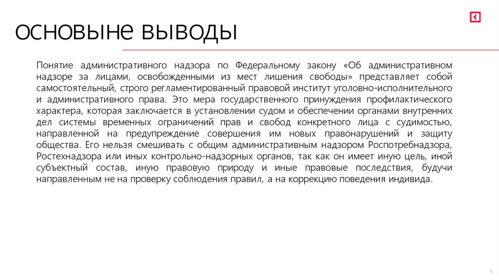 основыне выводыПонятие административного надзора по Федеральному закону «Об административном