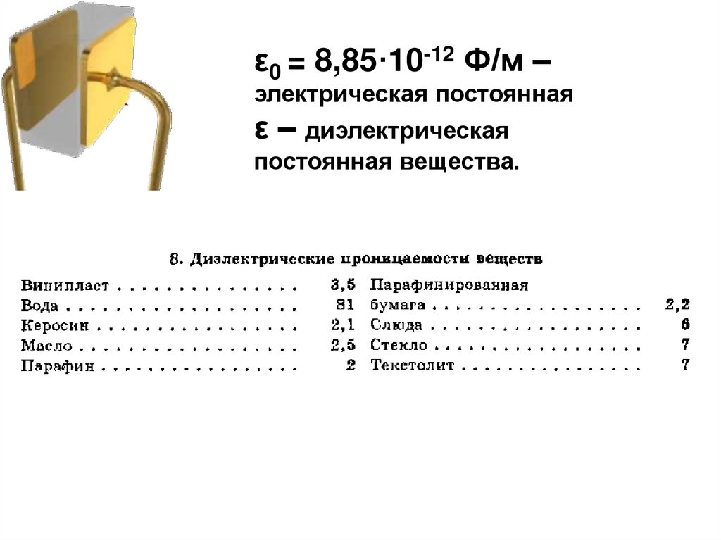 ε0 = 8,85·10-12 Ф/м –электрическая постоянная