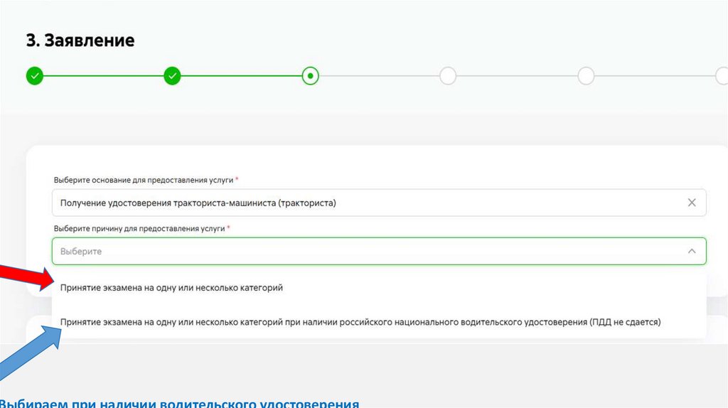 Выбираем при наличии водительского удостоверения