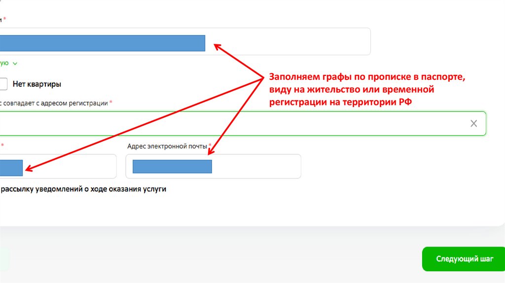 Заполняем графы по прописке в паспорте,