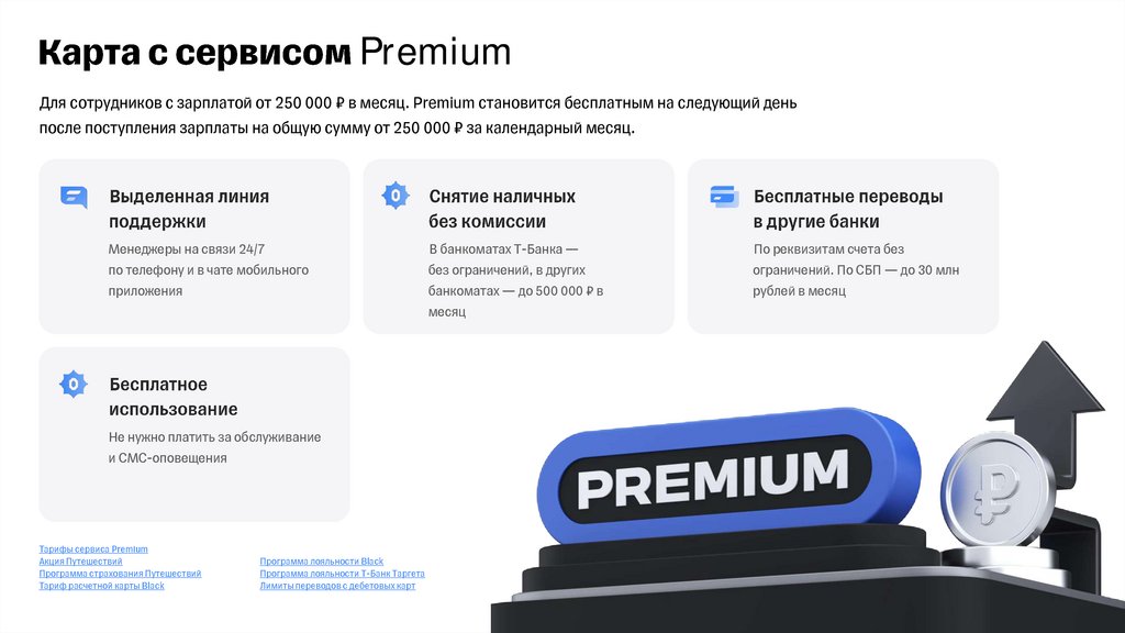 PremiumДля сотрудников с зарплатой от 250 000 ₽ в месяц. Premium становится бесплатным на следующий день