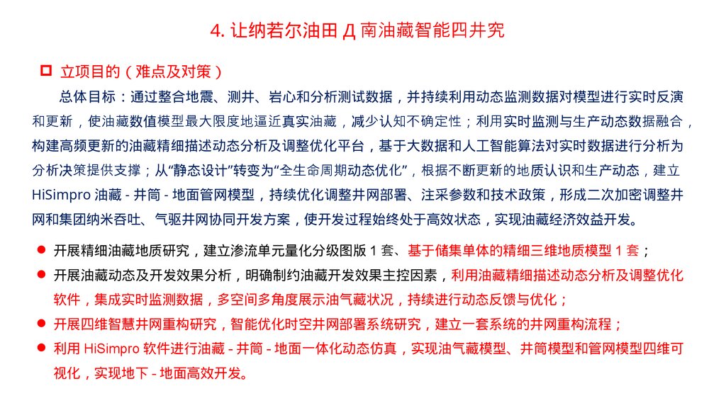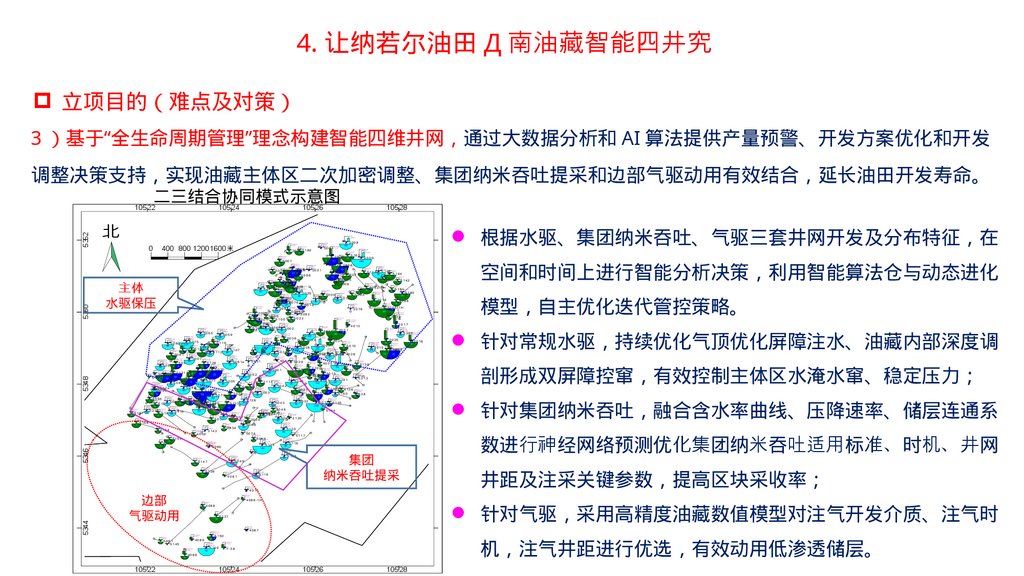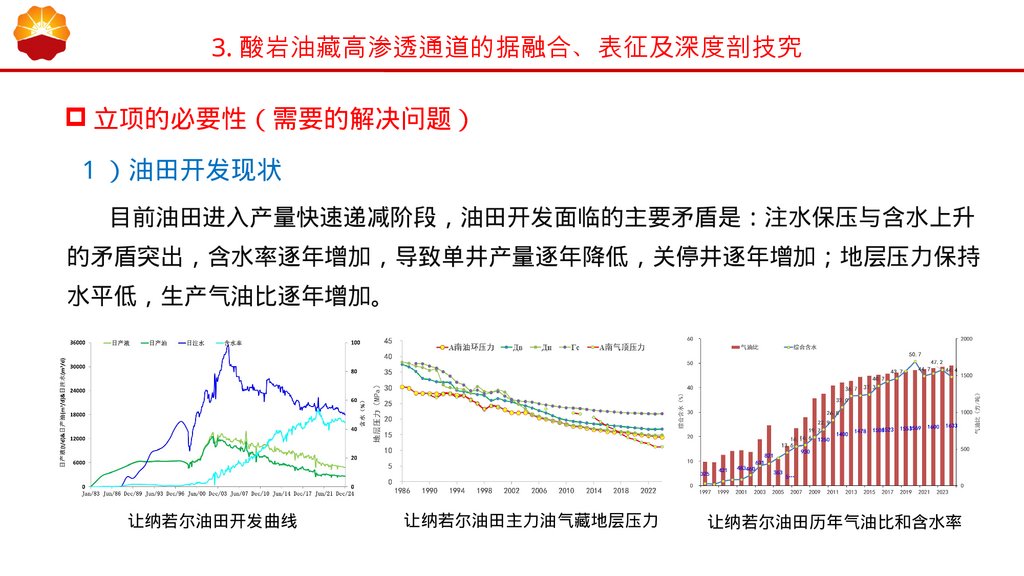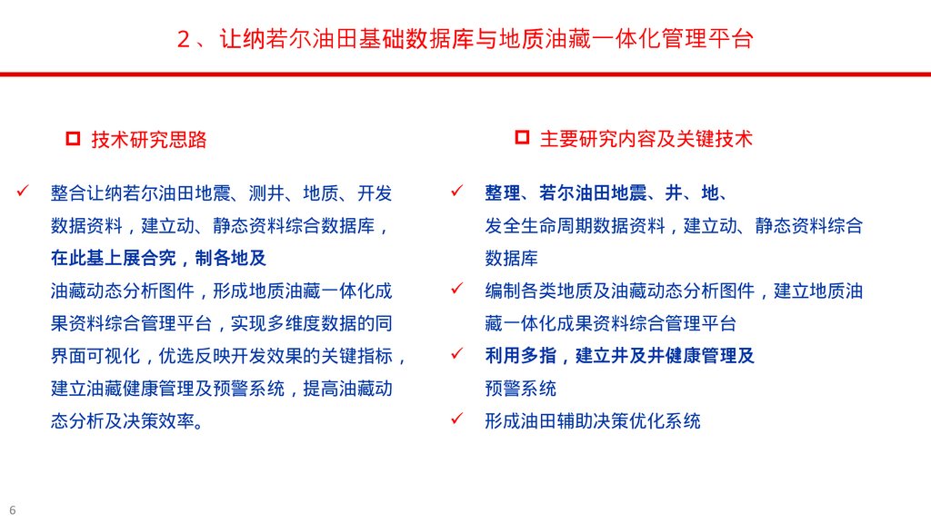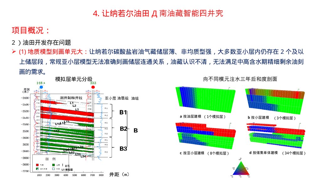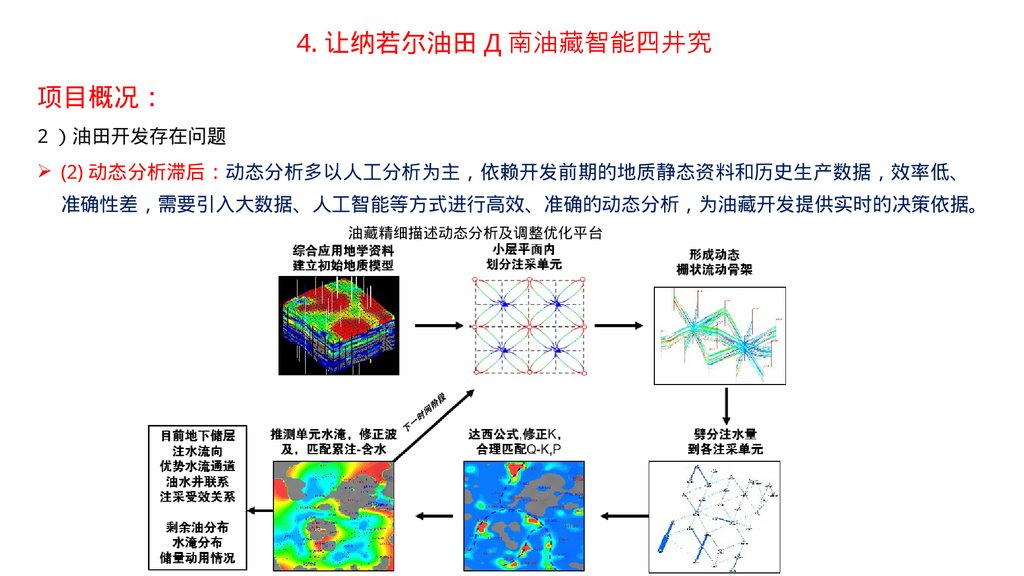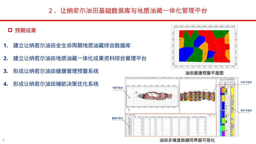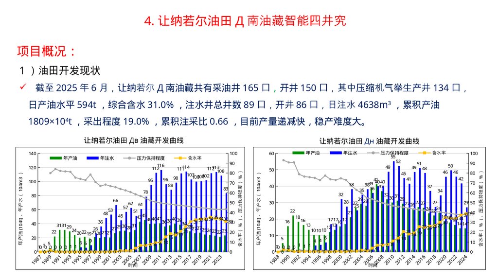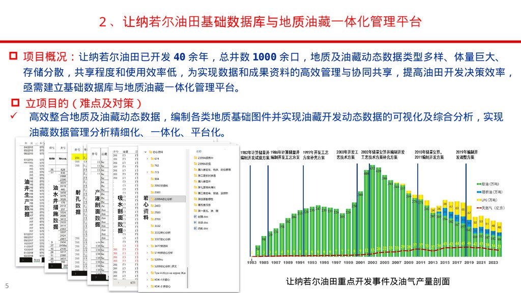 2 、让纳若尔油田基础数据库与地质油藏一体化管理平台项目概况 让纳若尔油田已开发 40 余年 总井数 1000 余口 地质及油藏动态数据类型多样、体量巨大、