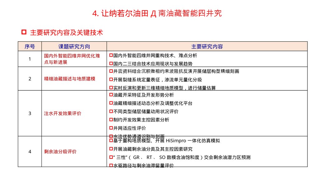 1 、北特鲁瓦油田智能注采优化设计与先导试验实施技术研究思路 基于储层特征和剩余油分布规律研究 结合油藏目前开发现状 确定分注轮采试验井