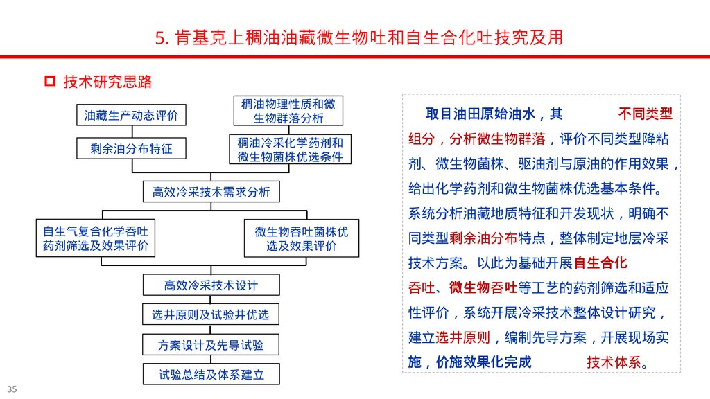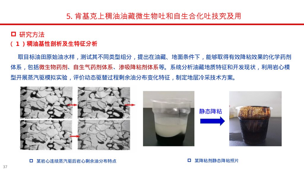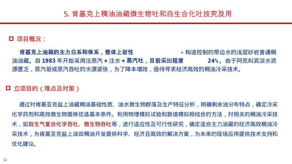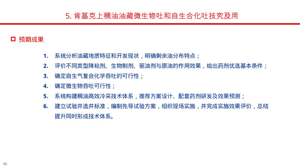 5. 肯基克上稠油油藏微生物吐和自生合化吐技究及用预期成果