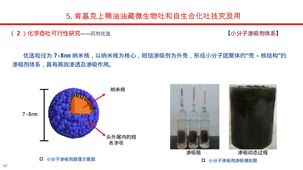 5. 肯基克上稠油油藏微生物吐和自生合化吐技究及用4 推荐方案设计、配套化学药剂和微生物制剂研发及效果预测——物理模拟