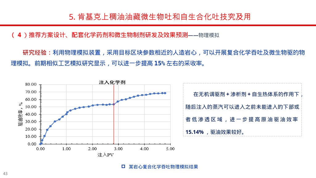 理模拟。前期相似工艺模拟研究显示 可以进一步提高 15% 左右的采收率。