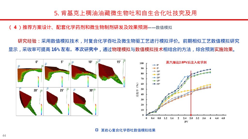 5. 肯基克上稠油油藏微生物吐和自生合化吐技究及用4 推荐方案设计、配套化学药剂和微生物制剂研发及效果预测——数值模拟