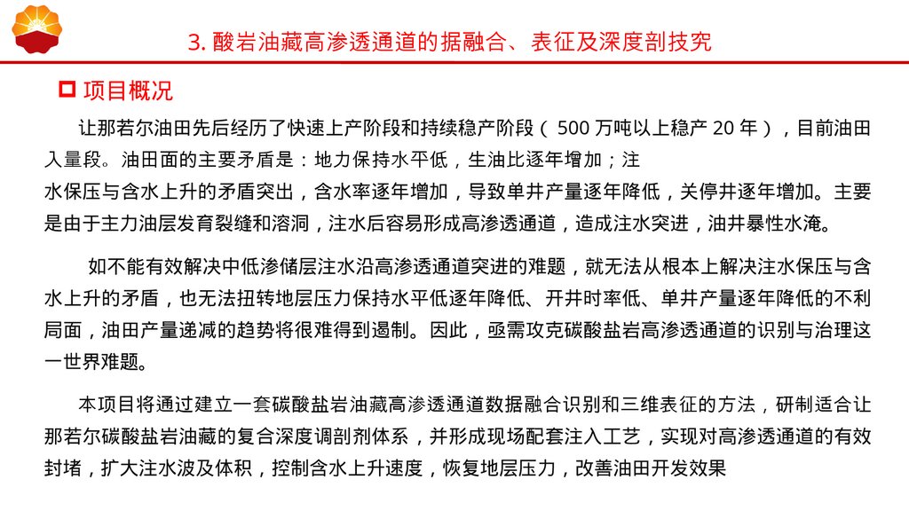 立项目的 针对 KT-II 层非均质性强 水窜严重 含水率上升导致关停井增加等现象 在明确剩余油分布