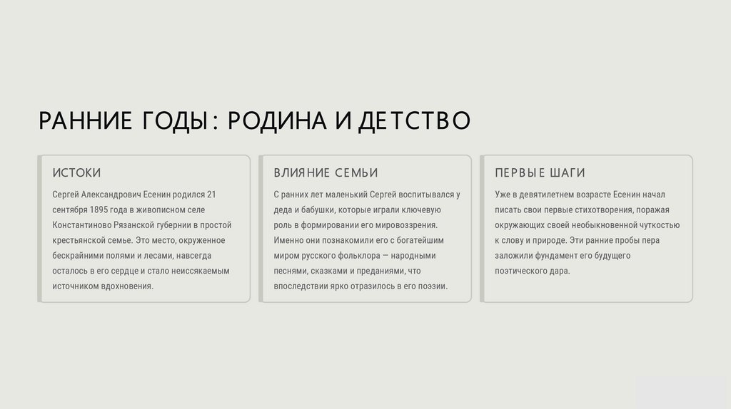 РАННИЕ ГОДЫ : РОДИНА И ДЕ ТСТВ ОИСТОКИ