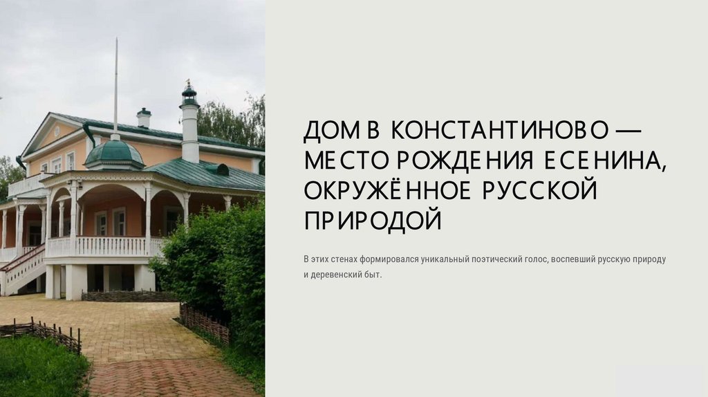 ДОМ В КОНСТАНТИНОВ О —МЕ СТО РОЖДЕ НИЯ Е СЕ НИНА,