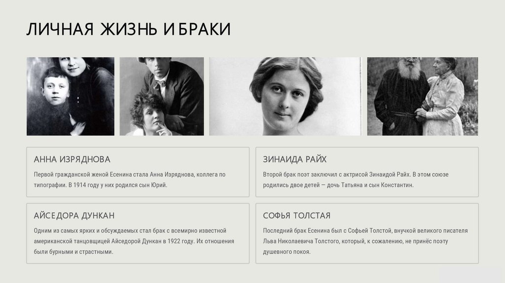 Последний брак Есенина был с Софьей Толстой, внучкой великого писателя