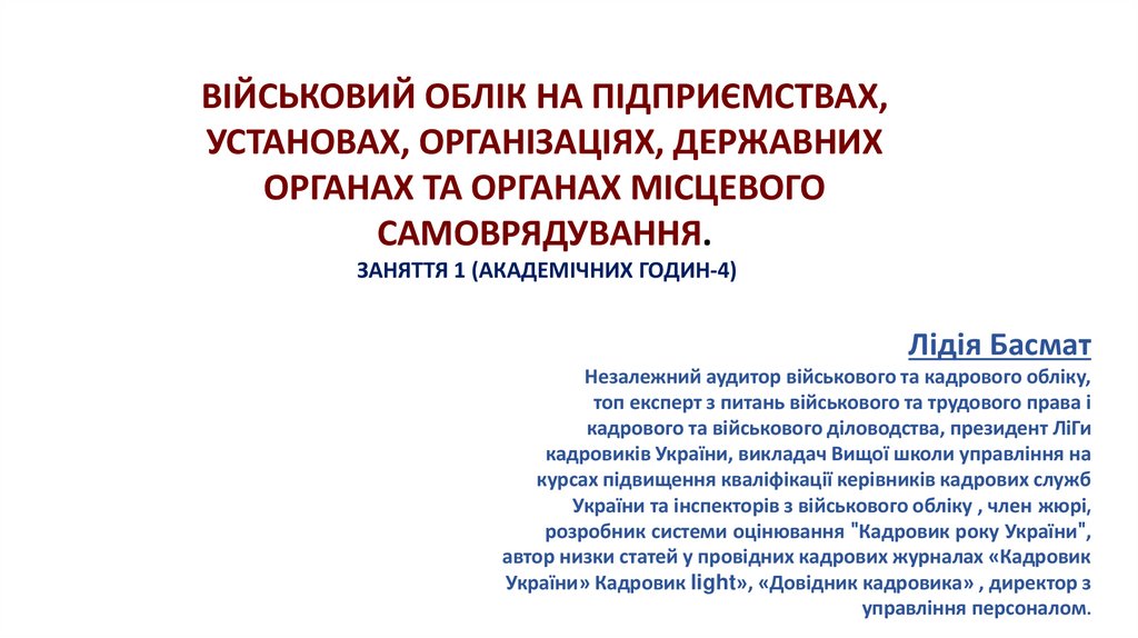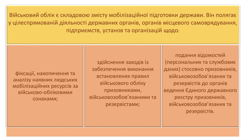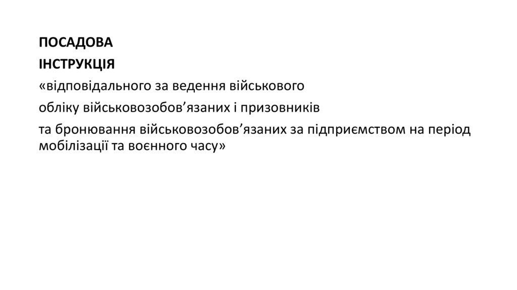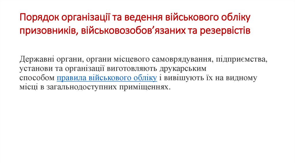 ВІЙСЬКОВИЙ ОБЛІК НА ПІДПРИЄМСТВАХ,УСТАНОВАХ, ОРГАНІЗАЦІЯХ, ДЕРЖАВНИХ