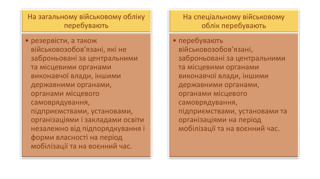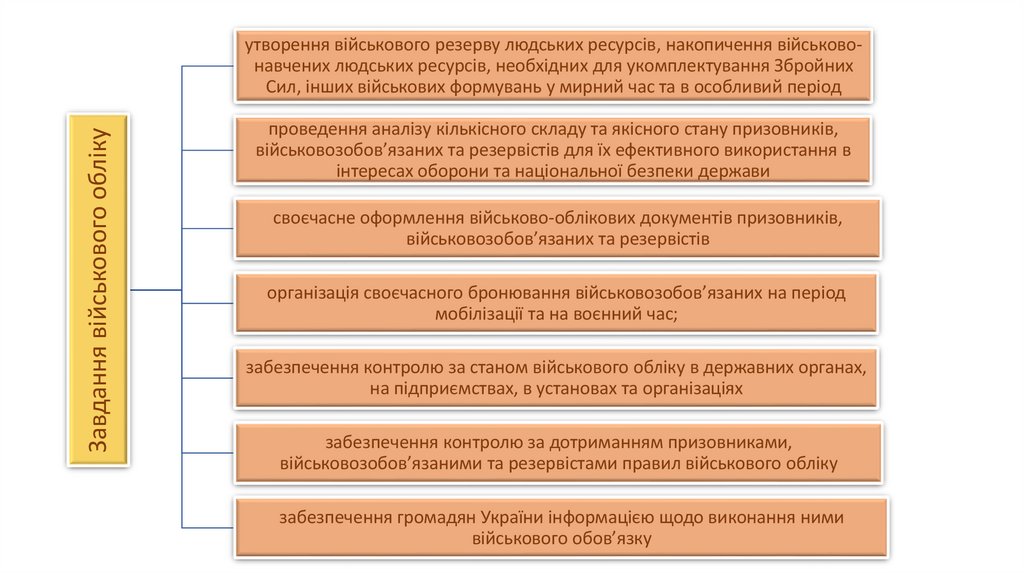 21. Взяттю на персонально-первинний та персональний військовий облік вдержавних органах, органах місцевого самоврядування, на підприємствах, в