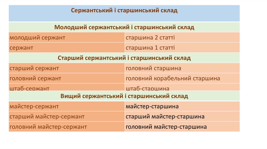 особи сержантського і старшинського складу, які проходять військову службу за контрактом або