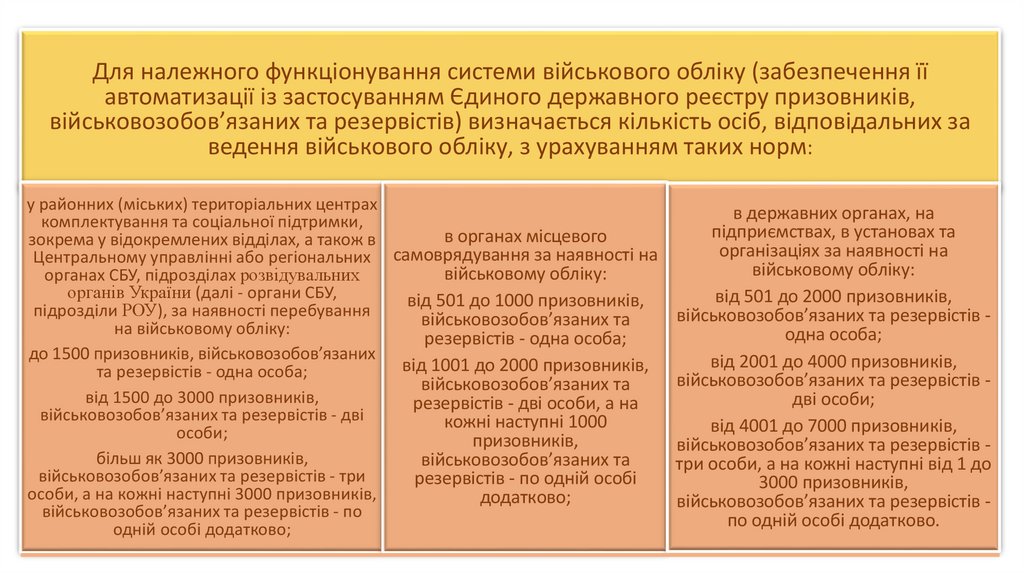 військовозобов’язаних та резервістів) визначається кількість осіб, відповідальних за