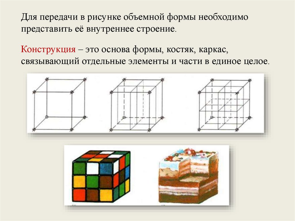 Для передачи в рисунке объемной формы необходимопредставить её внутреннее строение.
