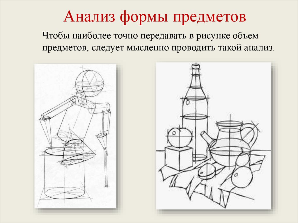 Анализ формы предметовЧтобы наиболее точно передавать в рисунке объем