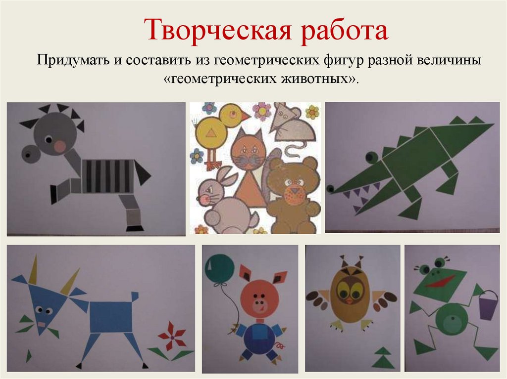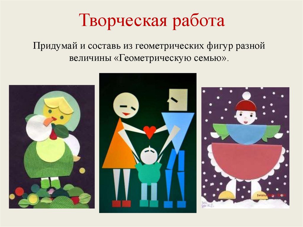 Творческая работаПридумать и составить из геометрических фигур разной величины