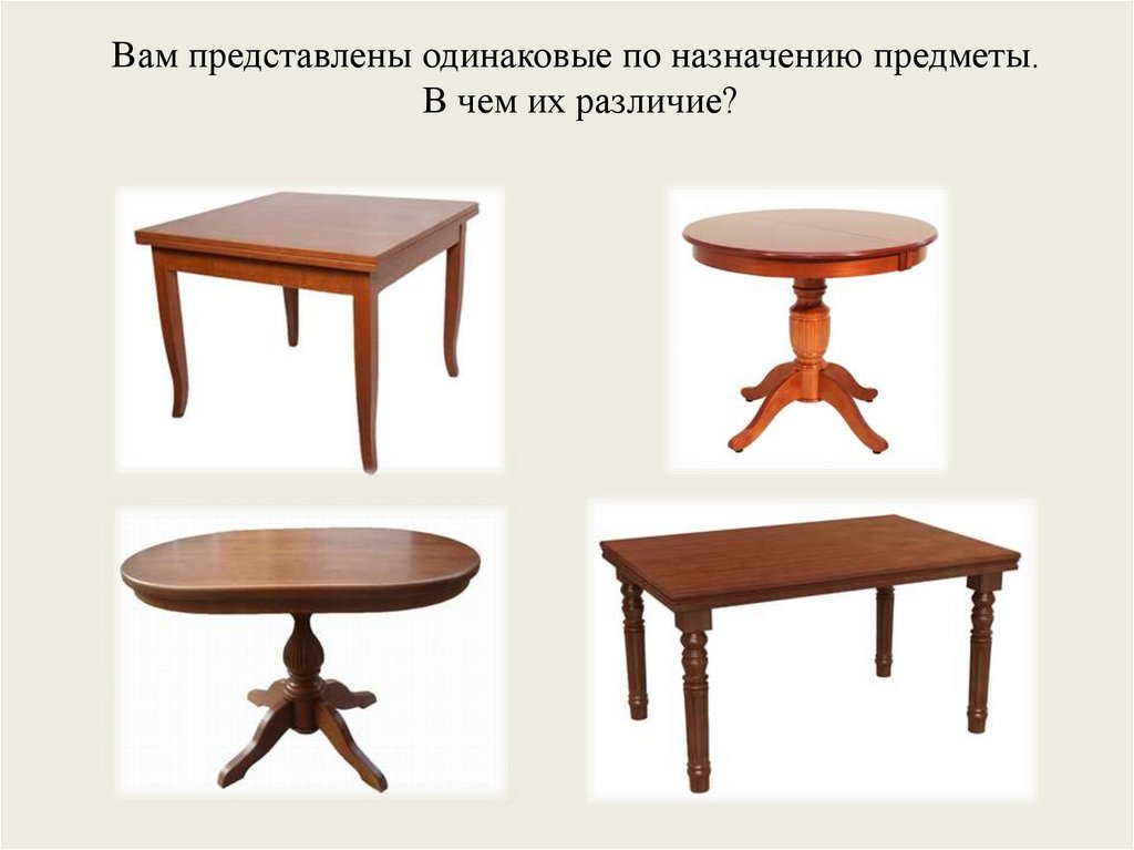 Вам представлены одинаковые по назначению предметы.В чем их различие?