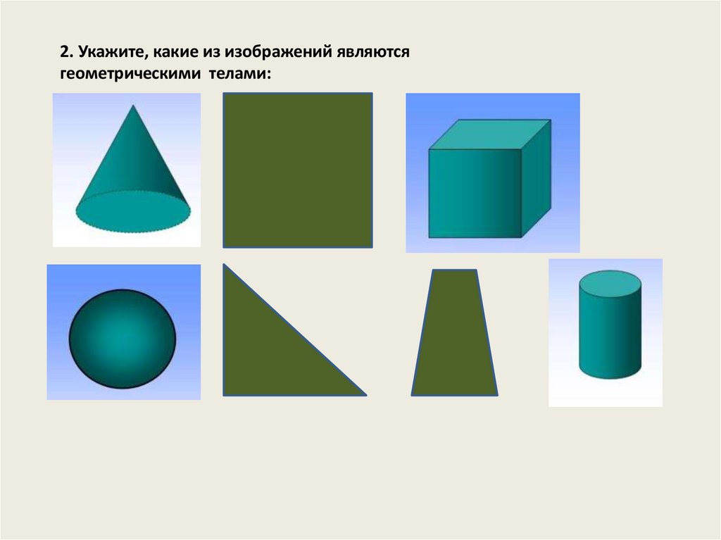 2. Укажите, какие из изображений являютсягеометрическими телами: