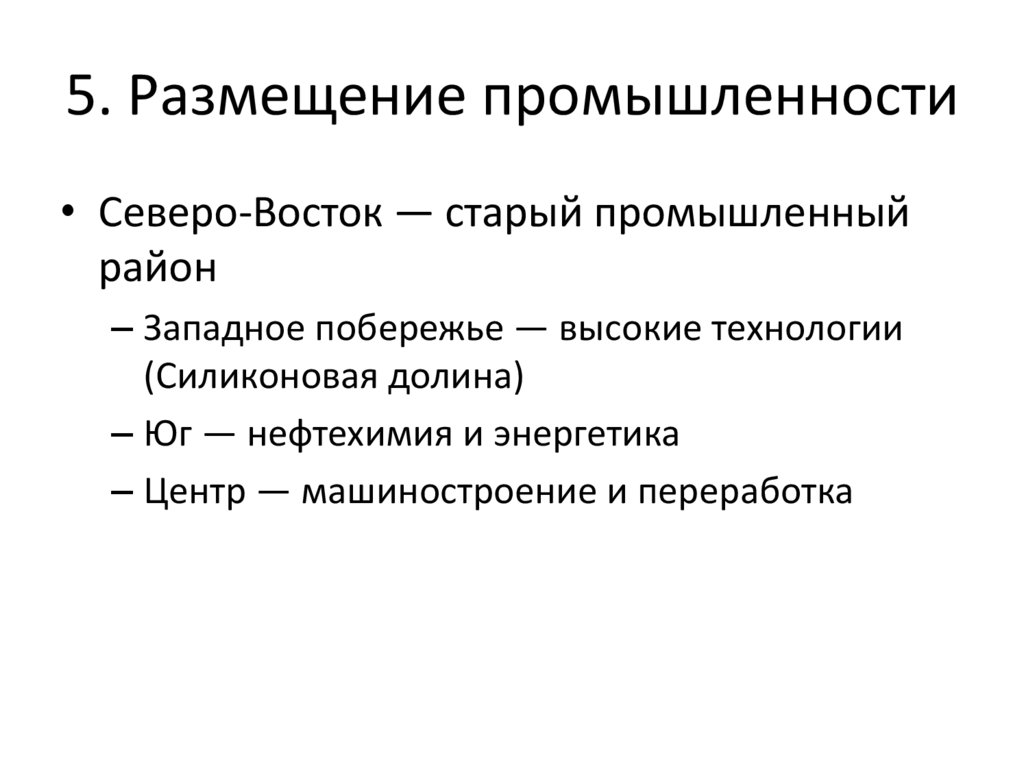 5. Размещение промышленности• Северо-Восток — старый промышленный