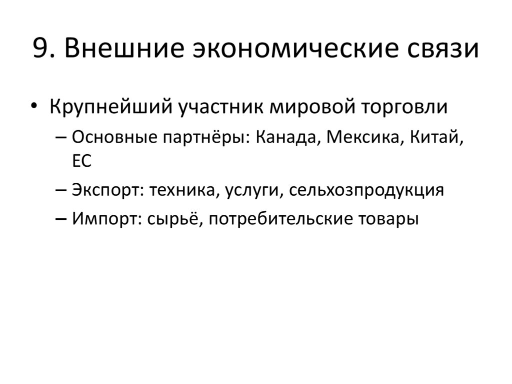 9. Внешние экономические связи• Крупнейший участник мировой торговли