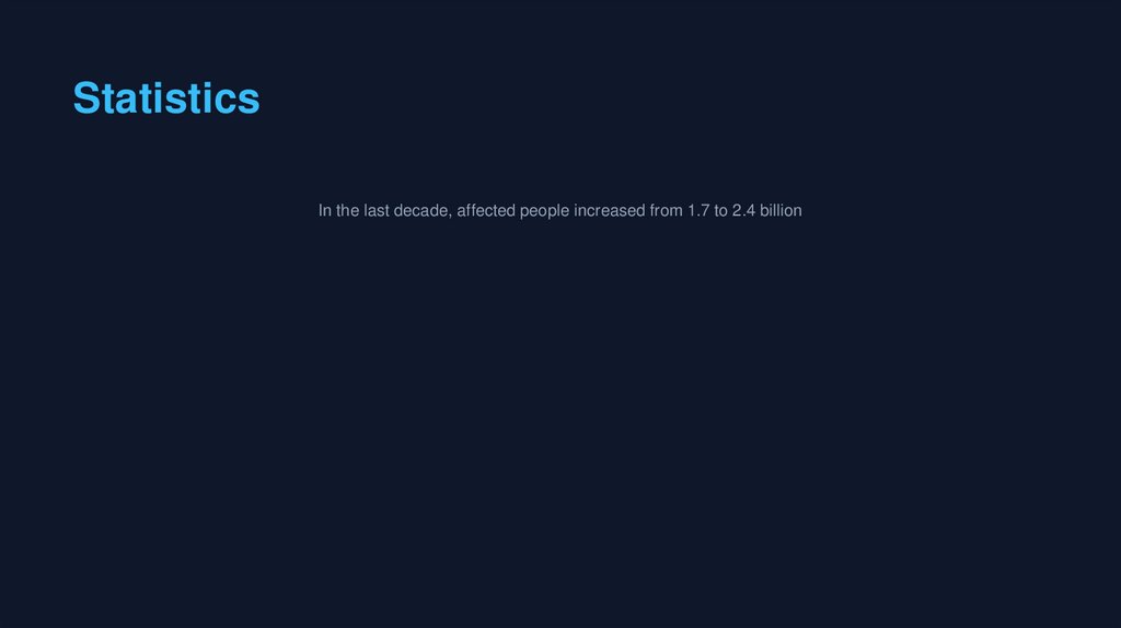 StatisticsIn the last decade, affected people increased from 1.7 to 2.4 billion