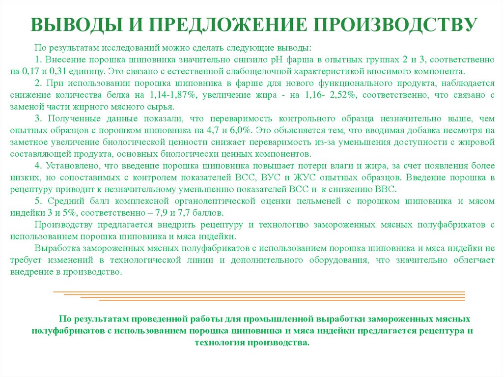 ВЫВОДЫ И ПРЕДЛОЖЕНИЕ ПРОИЗВОДСТВУПо результатам исследований можно сделать следующие выводы: