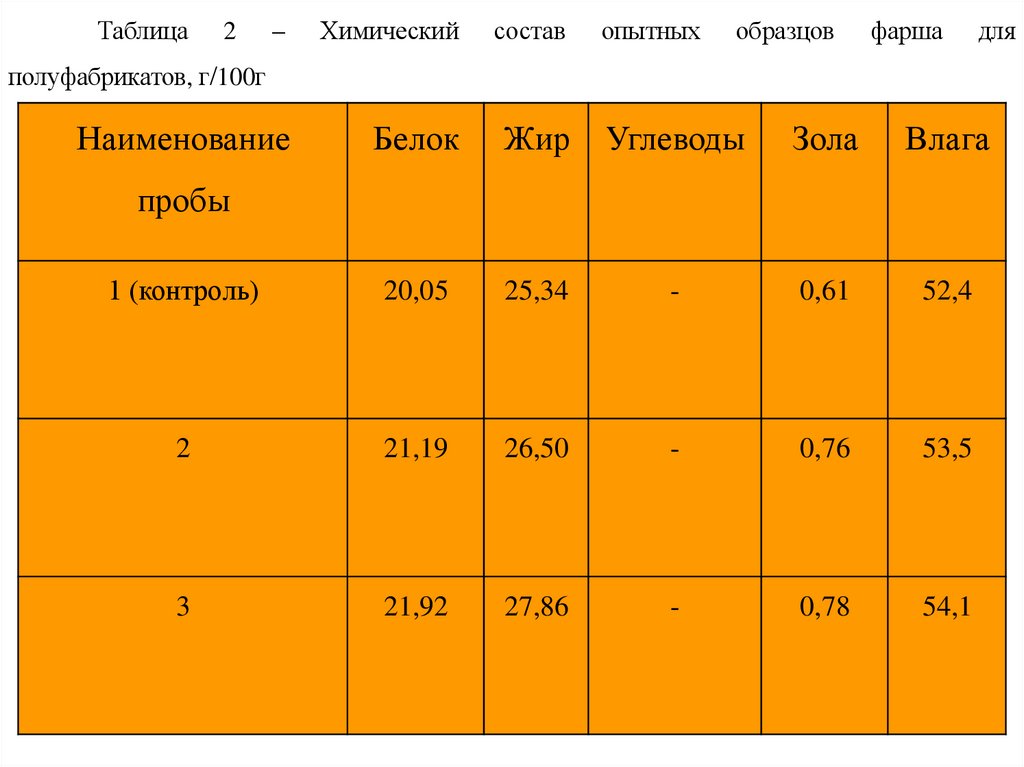 составляющей продукта, основных биологически ценных компонентов.