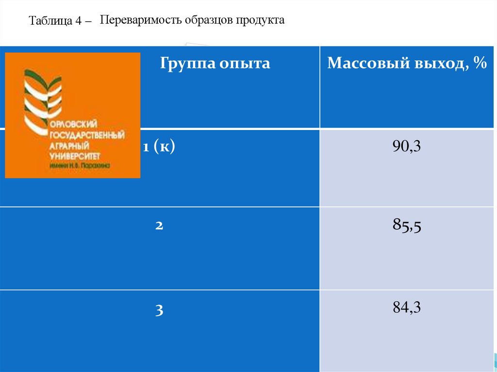 Таблица 4 – Переваримость образцов продуктаГруппа опыта