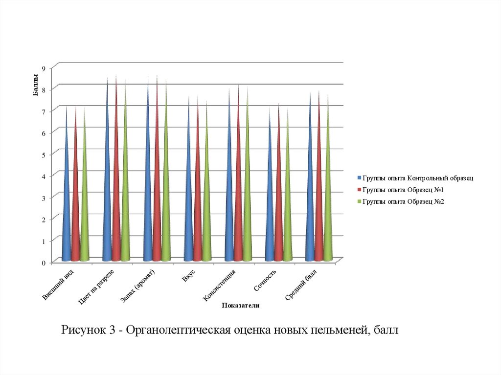 Рисунок 3 - Органолептическая оценка новых пельменей, балл