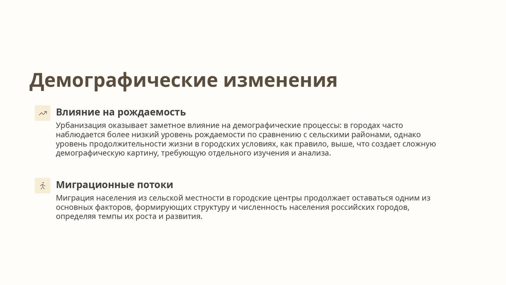 Урбанизация оказывает заметное влияние на демографические процессы: в городах часто