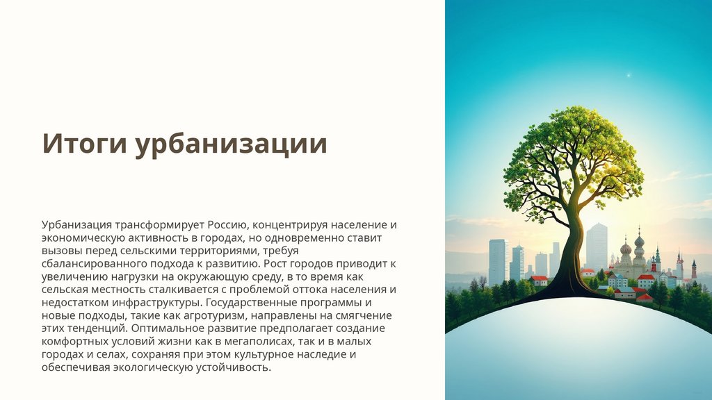 Итоги урбанизацииУрбанизация трансформирует Россию, концентрируя население и