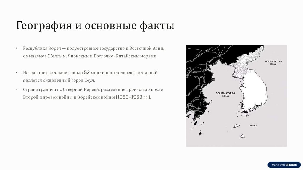 География и основные фактыРеспублика Корея — полуостровное государство в Восточной Азии,