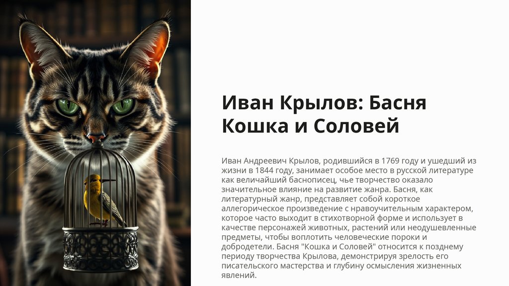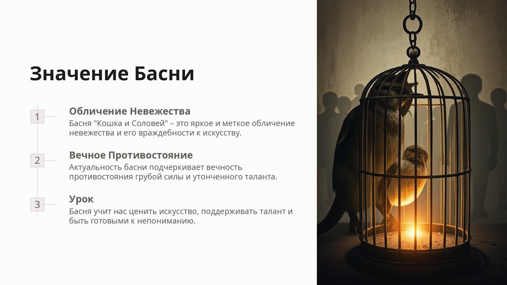 Басня "Кошка и Соловей" – это яркое и меткое обличение